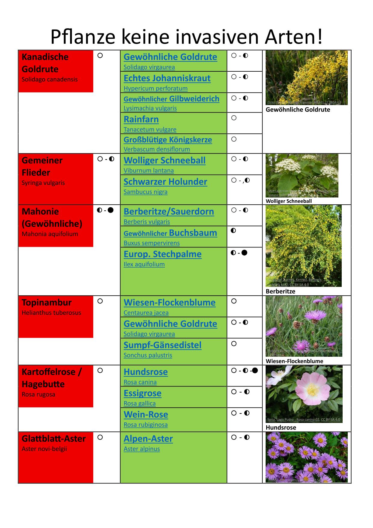 Invasive Arten und mögliche heimische Alternativen